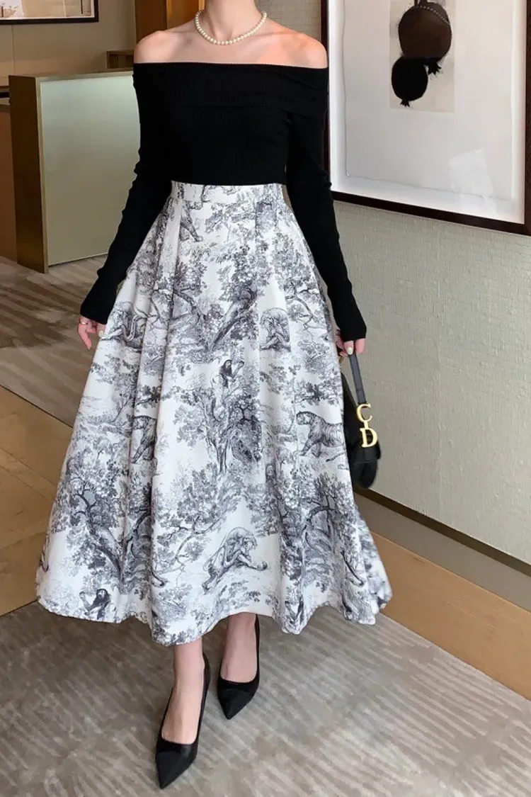 動物花紋裙